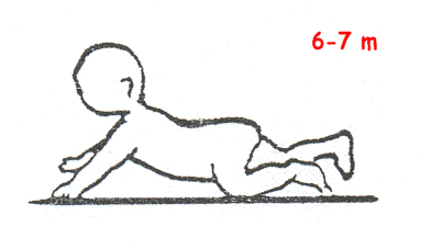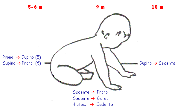 | Levanta abdomen; indispensable para la propulsión. Balanceo antero-posterior. | CREEPING: Gateo sobre manos y rodillas. Gateo alterno (10 meses) |