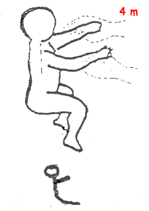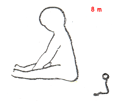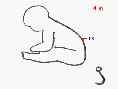 | Cifosis global. Imposibilidad de extender miembros inferiores. | Dorso alto recto. Cifosis baja (vértice L3) |